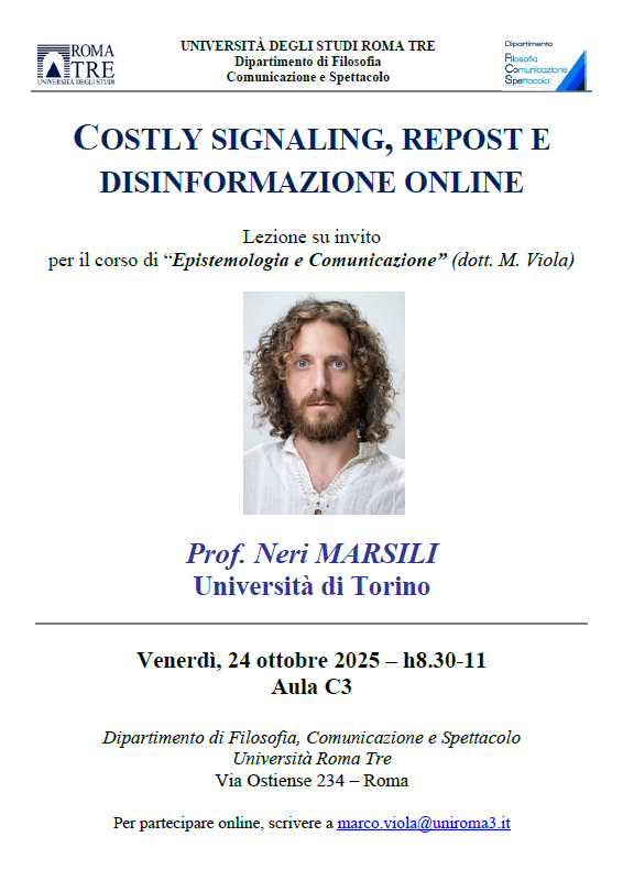 Per partecipare online, scrivere a Link identifier #identifier__93051-1marco.viola@uniroma3.it